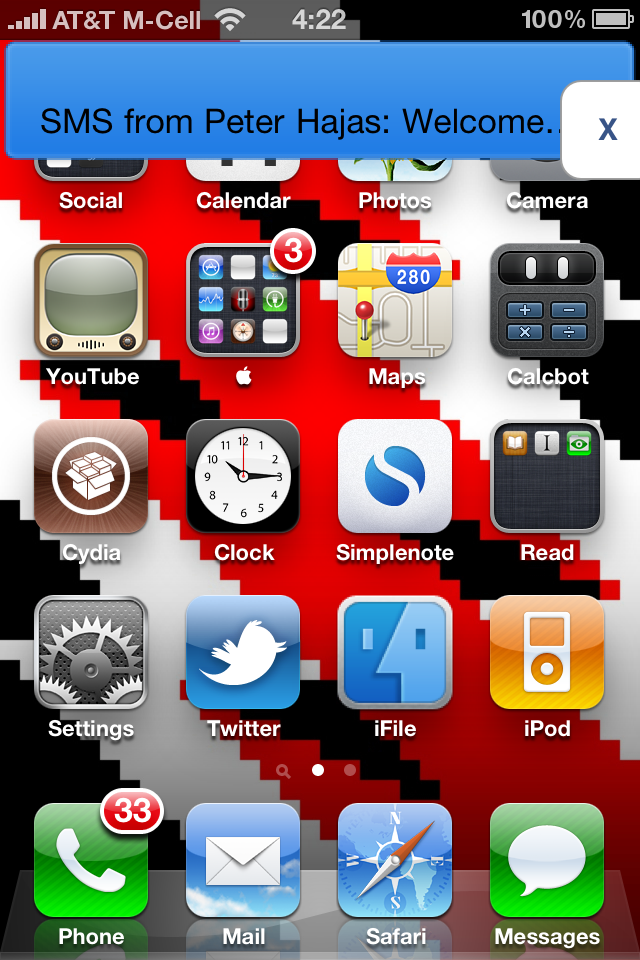 PLEASE note that this is ALPHA software. I am not responsible for anything bad that happens to your device. See MobileNotifier for more details. I have only tested this on iPhone 4, but it should work on all devices. Please tell me if it does or does not work on your device!